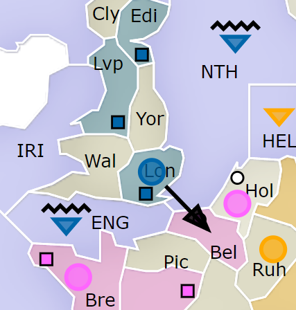 - 북해(NTH)의 해군을 통해 벨기에(Bel)로 가능 경로